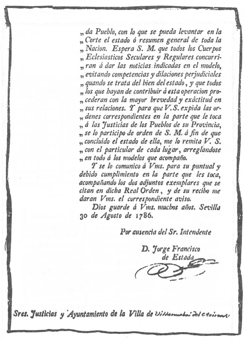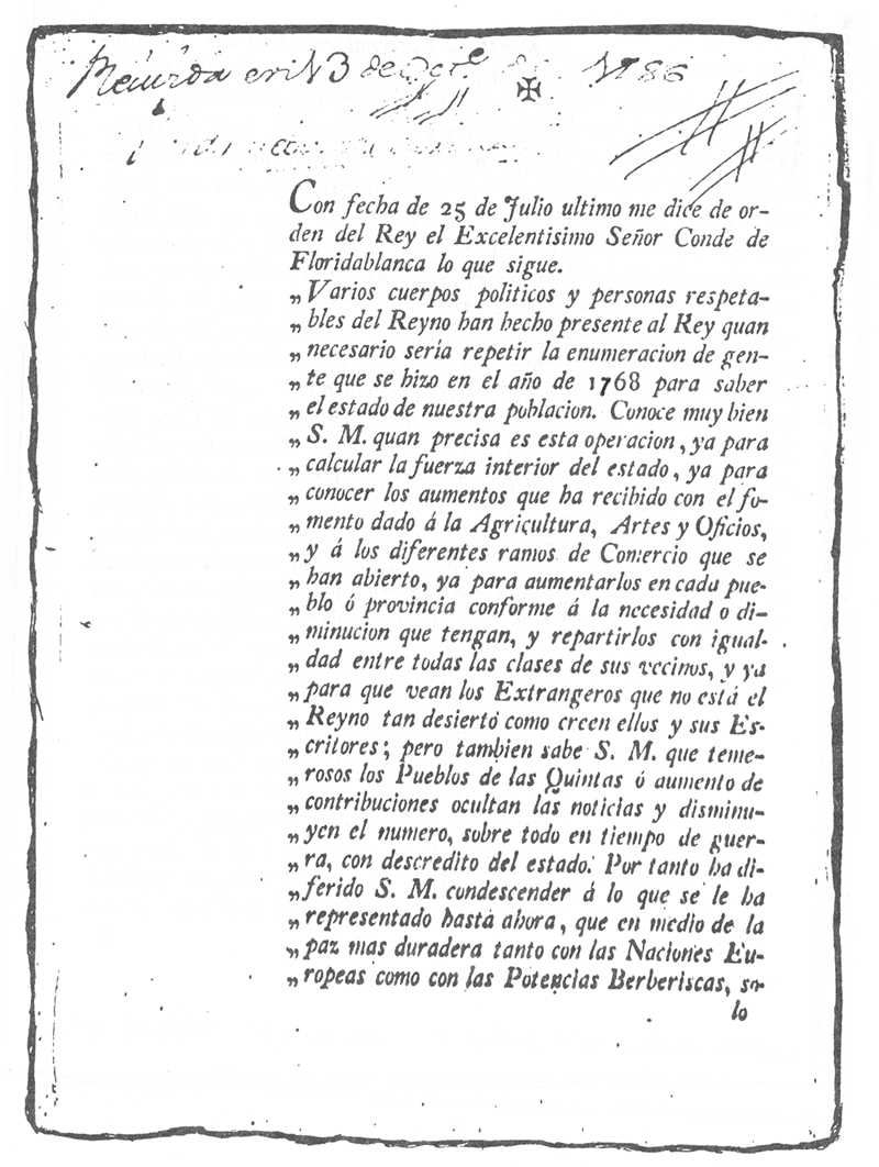 La Real Orden de 25 de julio de 1786 dio lugar al conocido Censo de Floridablanca en el año 1787.