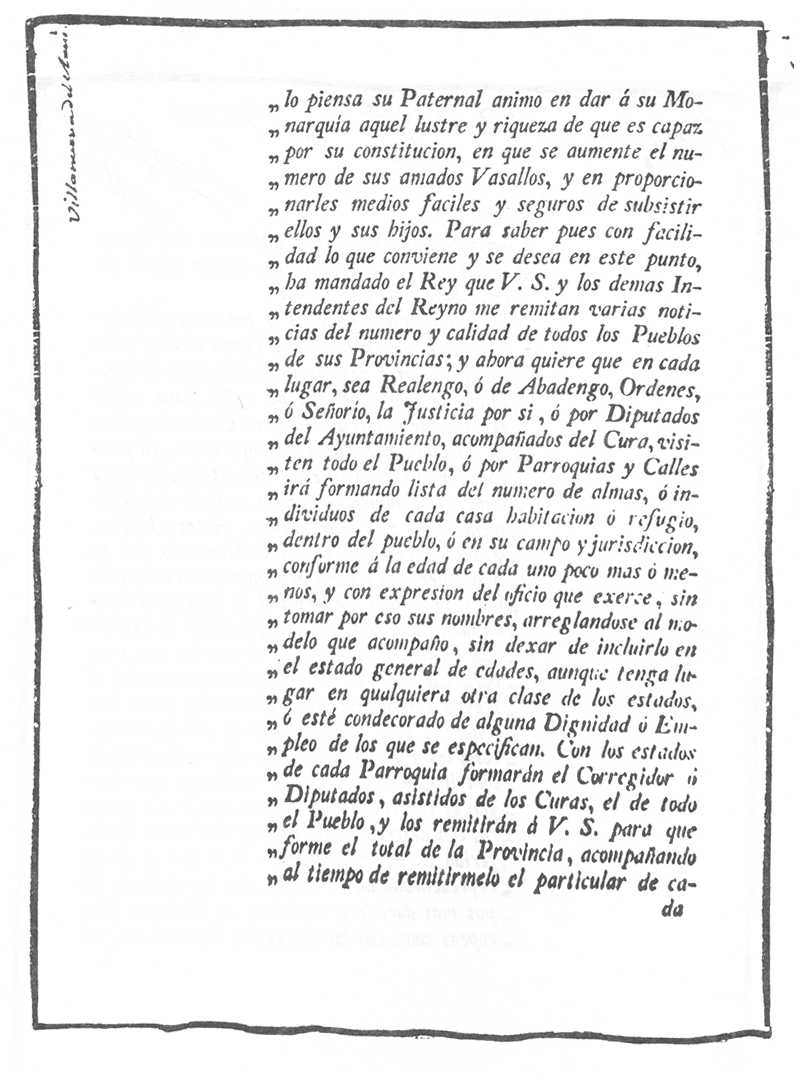 El texto integro, tomado de la publicación efectuada por el Instituto Nacional de Estadística en el año 1987 con motivo del 2º centenario del renombrado Censo, puede ser consultado en estas páginas.