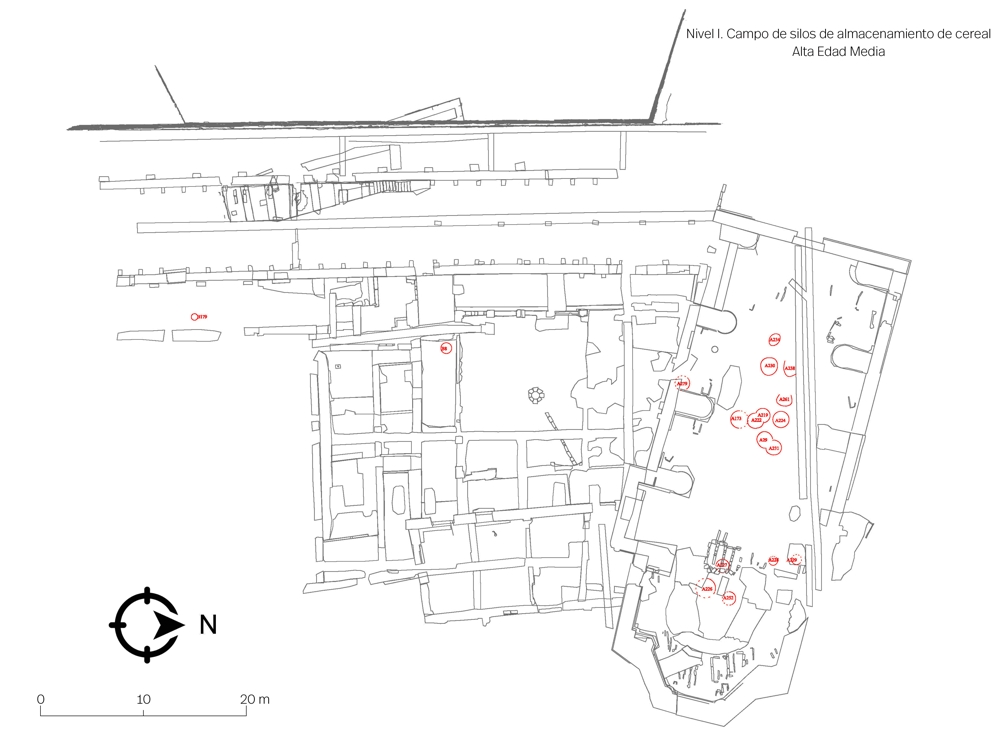 - Nivel I. Campo de silos de cereal habilitado en las primeras fases de la Edad Media. Hasta la fecha, únicamente ha podido ser documentada la fracción del campo coincidente con el área cumbrera del cerro primigenio de Valcuerna.