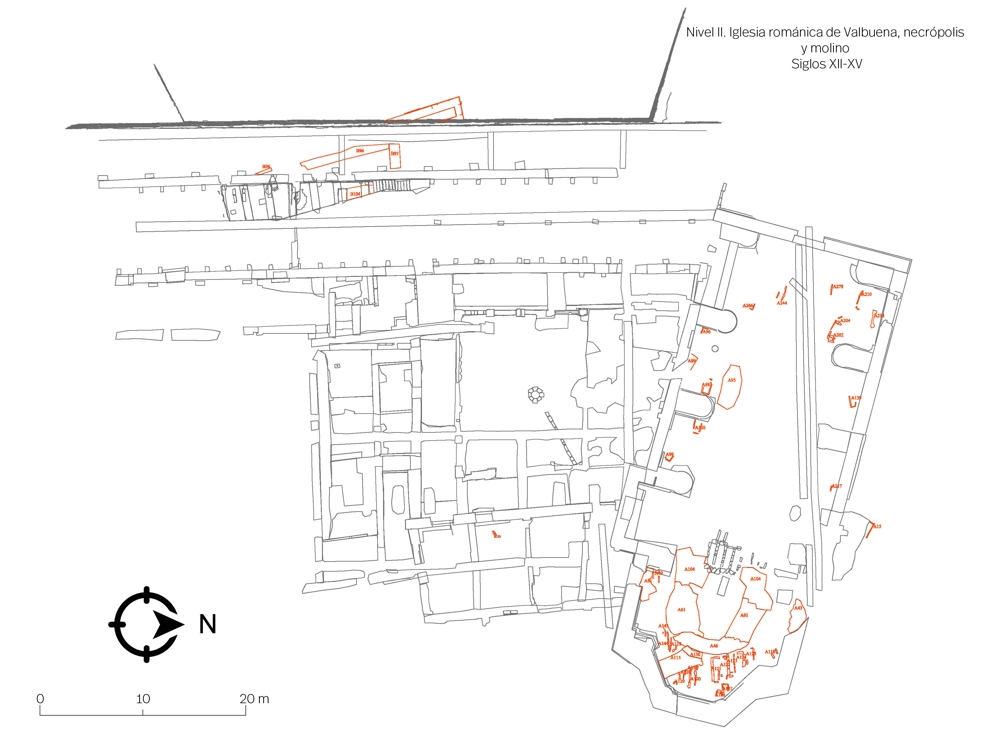 - Nivel II. La iglesia románica de Santa María de Valcuerna, necrópolis exterior y molino. Siglos XII-XV. Vinculación con la infraestructura del Camino de Santiago y con la promoción institucional movilizada por el fuero de francos, concedido a Logroño en el año 1095.
