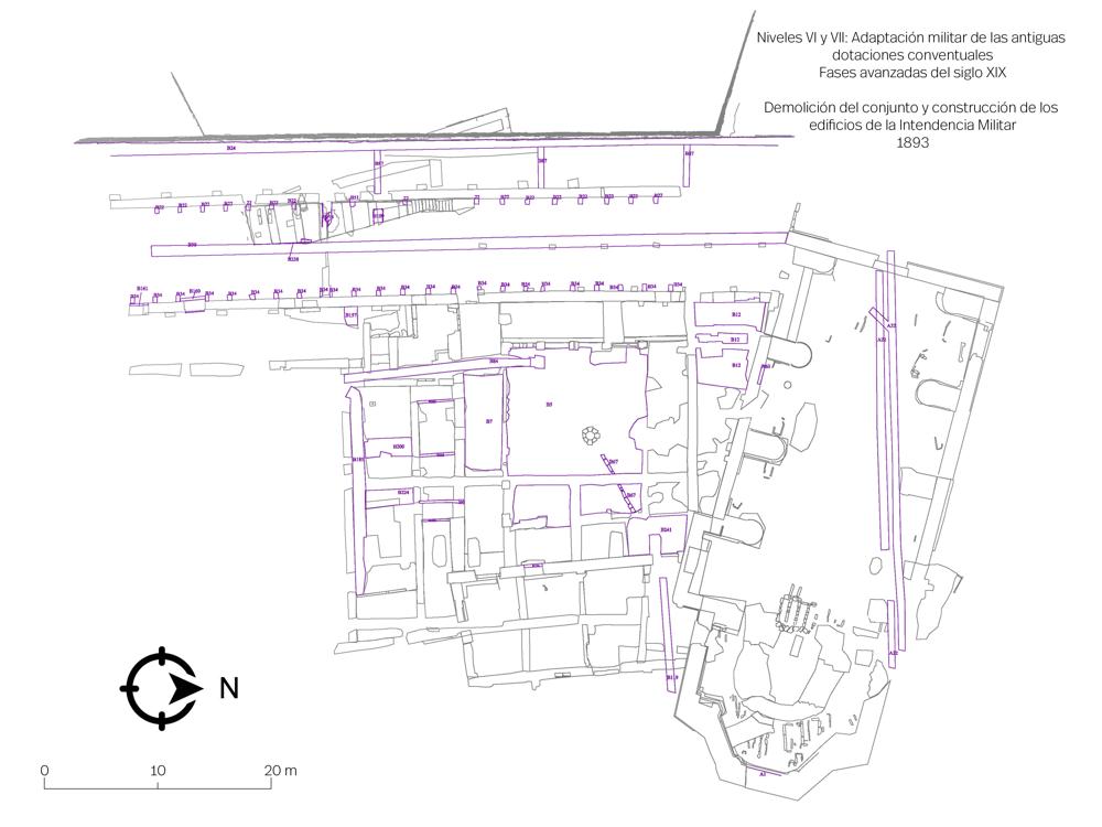 - Nivel VII. Demolición de las dotaciones conventuales reformadas y construcción de los edificios de la Intendencia Militar. Año 1893.
